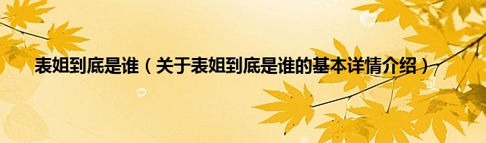 本文关于表姐到底是谁的基本详情介绍就讲解完毕,希望对大家有所帮助。