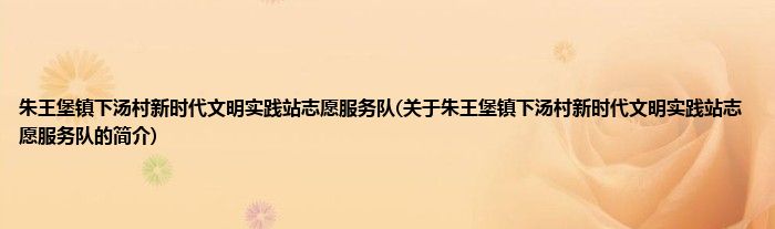本文关于朱王堡镇下汤村新时代文明实践站志愿服务队的简介就讲解完毕,希望对大家有所帮助。