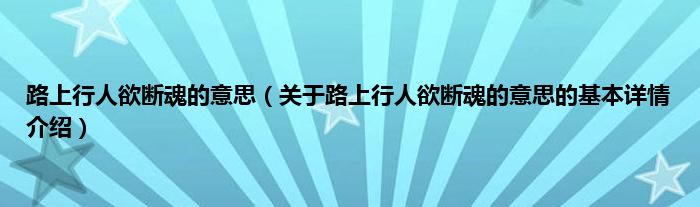 本文关于路上行人欲断魂的意思的基本详情介绍就讲解完毕,希望对大家有所帮助。