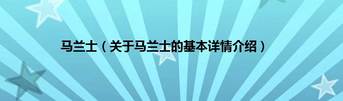 大家好我是小蝌蚪,马兰士,关于马兰士的基本详情介绍很多人还不知道,那么现在让我们一起来看看吧!