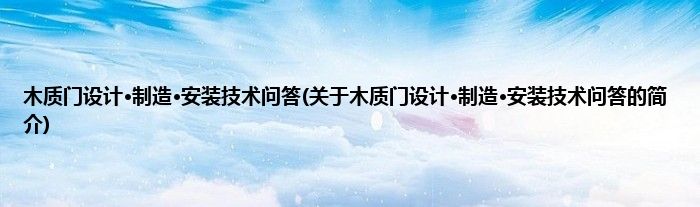 本文关于木质门设计·制造·安装技术问答的简介就讲解完毕,希望对大家有所帮助。