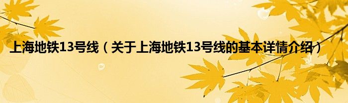 本文关于上海地铁13号线的基本详情介绍就讲解完毕,希望对大家有所帮助。