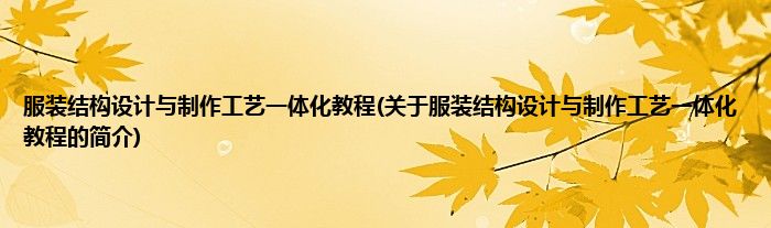本文关于服装结构设计与制作工艺一体化教程的简介就讲解完毕,希望对大家有所帮助。