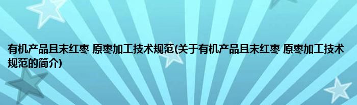有机产品且末红枣原枣加工技术规范(关于有机产品且末红枣原枣加工技术规范的简介)
