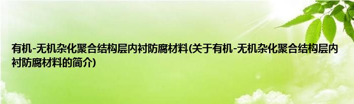 本文关于有机-无机杂化聚合结构层内衬防腐材料的简介就讲解完毕,希望对大家有所帮助。