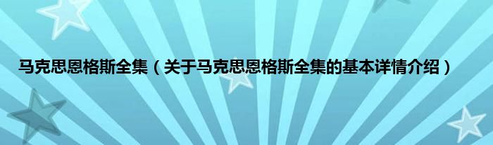 本文关于马克思恩格斯全集的基本详情介绍就讲解完毕,希望对大家有所帮助。