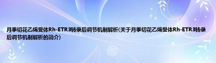 月季切花乙烯受体Rh-ETR3转录后调节机制解析(关于月季切花乙烯受体Rh-ETR3转录后调节机制解析的简介)