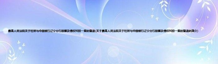 本文关于最高人民法院关于杜妍与中国银行辽宁分行股票及侵权纠纷一案的复函的简介就讲解完毕,希望对大家有所帮助。