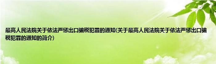 本文关于最高人民法院关于依法严惩出口骗税犯罪的通知的简介就讲解完毕,希望对大家有所帮助。