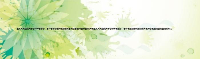 本文关于最高人民法院关于会计师事务所、审计事务所脱钩改制前民事责任承担问题的通知的简介就讲解完毕,希望对大家有所帮助。