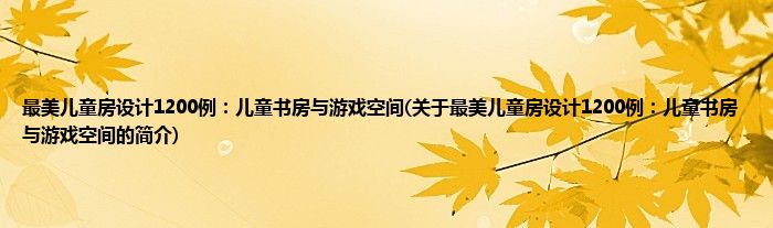 1、 《最美儿童房设计1200例:儿童书房与游戏空间》是2013年大连理工大学出版社出版的图书。