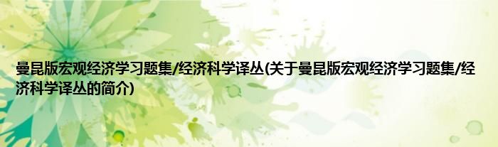 大家好,曼昆版宏观经济学习题集/经济科学译丛,关于曼昆版宏观经济学习题集/经济科学译丛的简介很多人还不知道,现在让我们一起来看看吧!