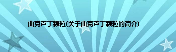 本文关于曲克芦丁颗粒的简介就讲解完毕,希望对大家有所帮助。