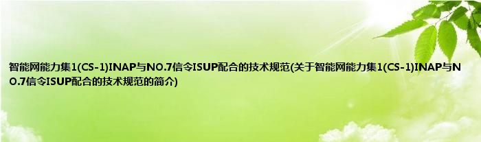 1、 《智能网能力集1(CS-1)INAP与NO.7信令ISUP配合的技术规范》是2002年6月21日发布的一项行业标准。