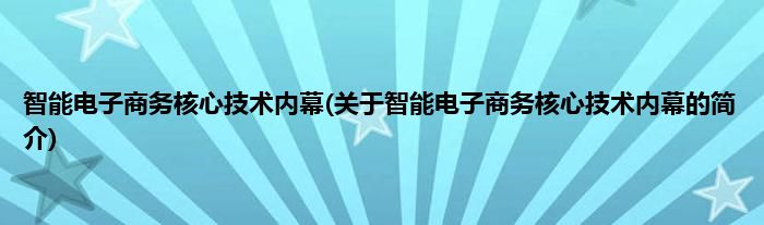 本文关于智能电子商务核心技术内幕的简介就讲解完毕,希望对大家有所帮助。