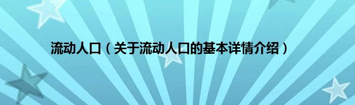 本文关于流动人口的基本详情介绍就讲解完毕,希望对大家有所帮助。