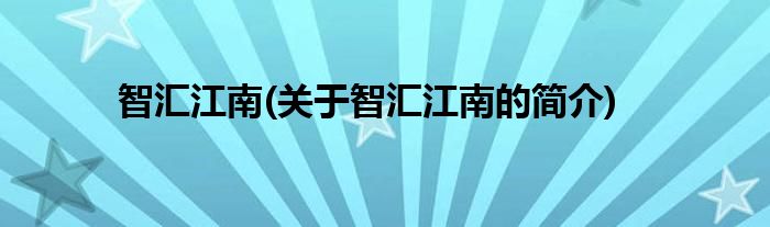 大家好,智汇江南,关于智汇江南的简介很多人还不知道,现在让我们一起来看看吧!