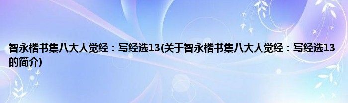 本文关于智永楷书集八大人觉经:写经选13的简介就讲解完毕,希望对大家有所帮助。