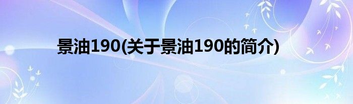 大家好,景油190,关于景油190的简介很多人还不知道,现在让我们一起来看看吧!