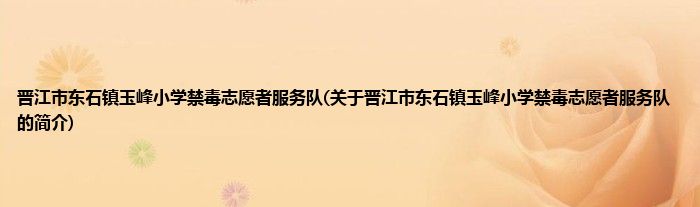 本文关于晋江市东石镇玉峰小学禁毒志愿者服务队的简介就讲解完毕,希望对大家有所帮助。