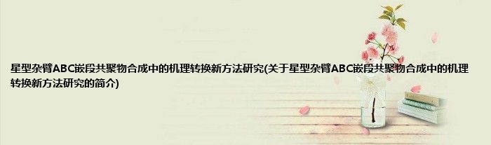 本文关于星型杂臂ABC嵌段共聚物合成中的机理转换新方法研究的简介就讲解完毕,希望对大家有所帮助。