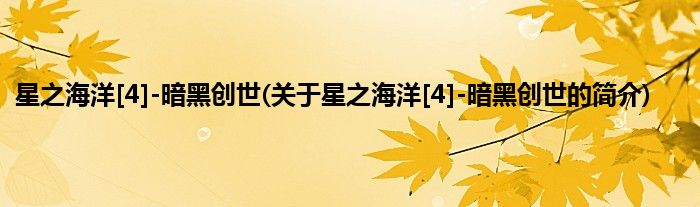 1、 《星之海洋[4]-暗黑创世》是2007年海洋出版社出版的图书。