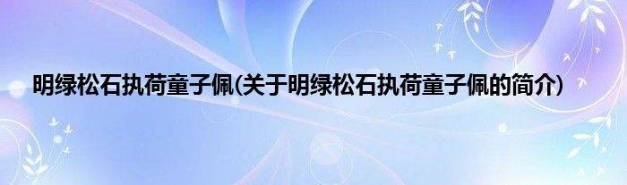 大家好,明绿松石执荷童子佩,关于明绿松石执荷童子佩的简介很多人还不知道,现在让我们一起来看看吧!
