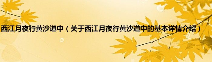 本文关于西江月夜行黄沙道中的基本详情介绍就讲解完毕,希望对大家有所帮助。