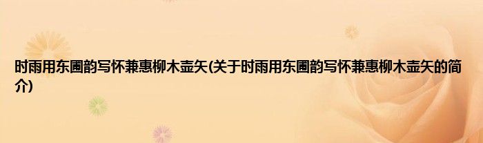 本文关于时雨用东圃韵写怀兼惠柳木壶矢的简介就讲解完毕,希望对大家有所帮助。