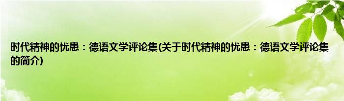本文关于时代精神的忧患:德语文学评论集的简介就讲解完毕,希望对大家有所帮助。