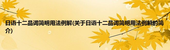 本文关于日语十二品词简明用法例解的简介就讲解完毕,希望对大家有所帮助。