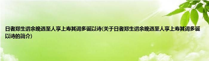本文关于日者郑生谓余晚遇至人享上寿其词多诞以诗的简介就讲解完毕,希望对大家有所帮助。