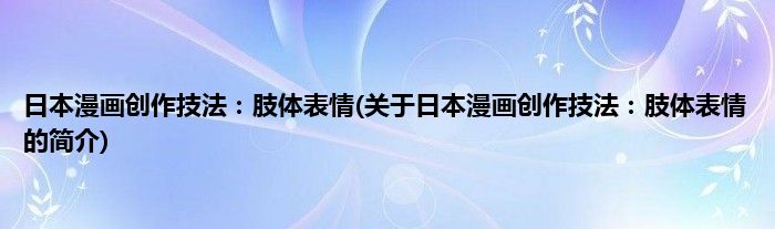 本文关于日本漫画创作技法:肢体表情的简介就讲解完毕,希望对大家有所帮助。
