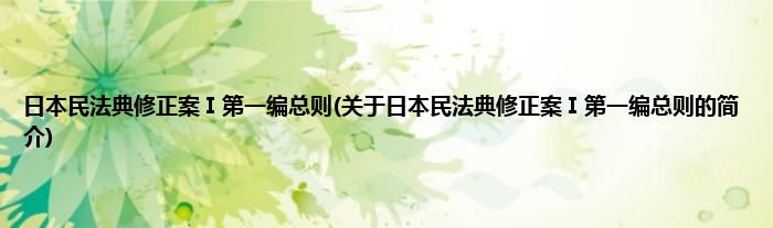 本文关于日本民法典修正案Ⅰ第一编总则的简介就讲解完毕,希望对大家有所帮助。