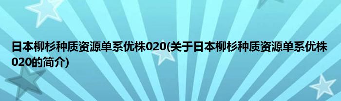 本文关于日本柳杉种质资源单系优株020的简介就讲解完毕,希望对大家有所帮助。
