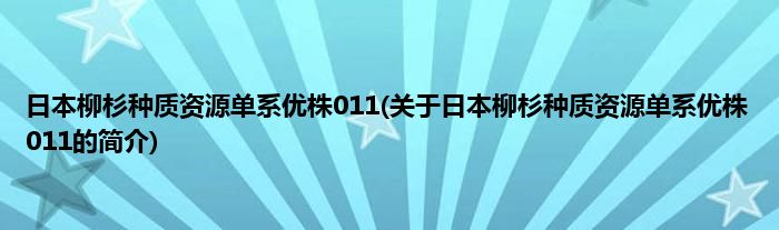 本文关于日本柳杉种质资源单系优株011的简介就讲解完毕,希望对大家有所帮助。