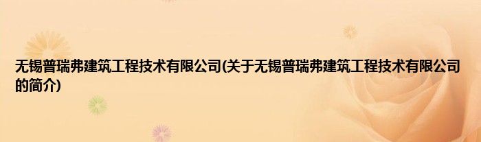 本文关于无锡普瑞弗建筑工程技术有限公司的简介就讲解完毕,希望对大家有所帮助。
