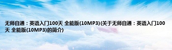 本文关于无师自通:英语入门100天 全能版(10MP3)的简介就讲解完毕,希望对大家有所帮助。