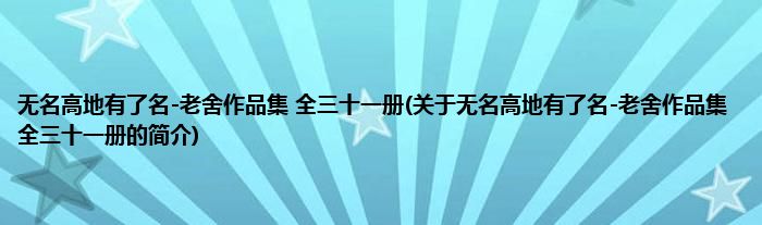 本文关于无名高地有了名-老舍作品集 全三十一册的简介就讲解完毕,希望对大家有所帮助。