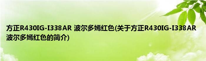 1、 方正R430IG-I338AR(波尔多嫣红色)是方正科技于2011年02月发布的一款家用笔记本电脑。