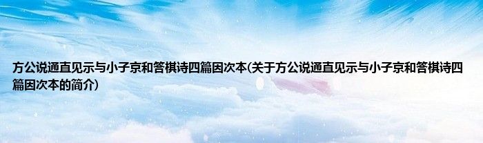 本文关于方公说通直见示与小子京和答棋诗四篇因次本的简介就讲解完毕,希望对大家有所帮助。