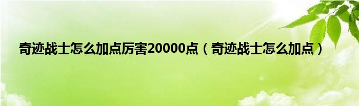 大家好,精选小编来为大家解答以上问题。奇迹战士怎么加点厉害20000点,奇迹战士怎么加点很多人还不知道,现在让我们一起来看看吧!