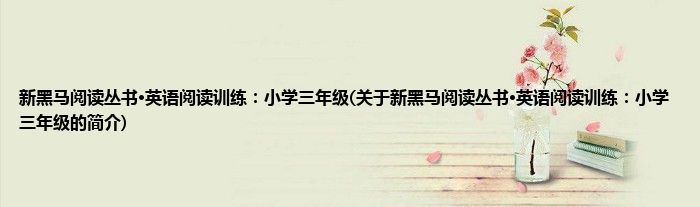 本文关于新黑马阅读丛书·英语阅读训练:小学三年级的简介就讲解完毕,希望对大家有所帮助。