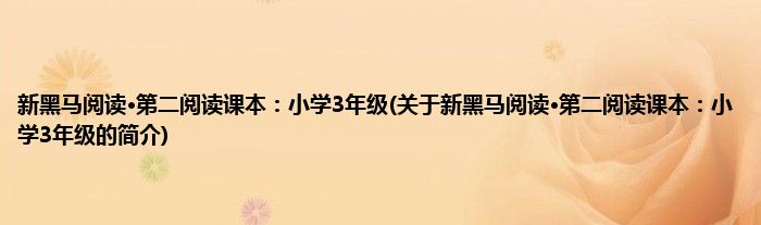 本文关于新黑马阅读·第二阅读课本:小学3年级的简介就讲解完毕,希望对大家有所帮助。