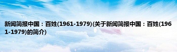 大家好,新闻简报中国:百姓,1961-1979,关于新闻简报中国:百姓,1961-1979的简介很多人还不知道,现在让我们一起来看看吧!