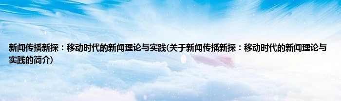 本文关于新闻传播新探:移动时代的新闻理论与实践的简介就讲解完毕,希望对大家有所帮助。