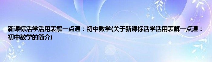 本文关于新课标活学活用表解一点通:初中数学的简介就讲解完毕,希望对大家有所帮助。