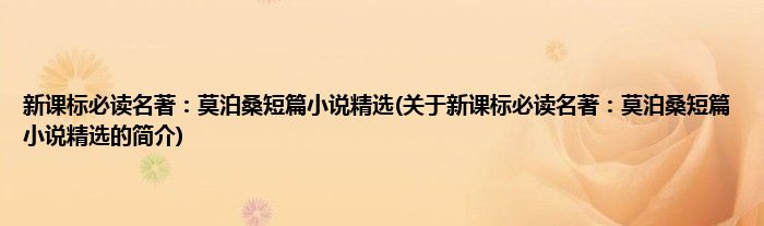 本文关于新课标必读名著:莫泊桑短篇小说精选的简介就讲解完毕,希望对大家有所帮助。