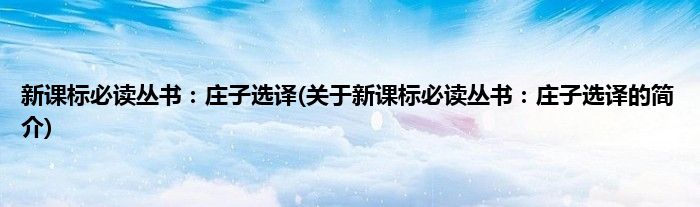 本文关于新课标必读丛书:庄子选译的简介就讲解完毕,希望对大家有所帮助。