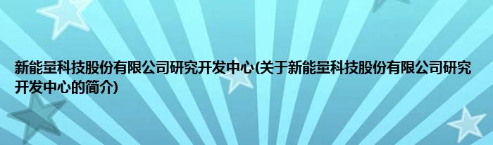 本文关于新能量科技股份有限公司研究开发中心的简介就讲解完毕,希望对大家有所帮助。